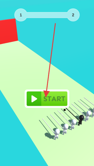 1、进入游戏,看到绿色【START】按钮,点击开启游戏。留意上方进度条(如【1-2】),明确当前关卡进程,准备操控角色前进。