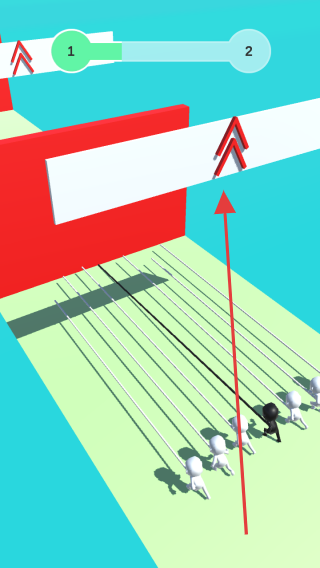 2、游戏中,操控角色躲避尖刺等障碍,朝着红色区域前进,注意上方进度条变化(如【2-3】),把握前进节奏。