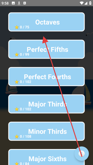1、进入游戏界面,看到【Octaves】等音乐类别选项,点击【Octaves】进入对应关卡列表,准备开启音乐学习挑战。