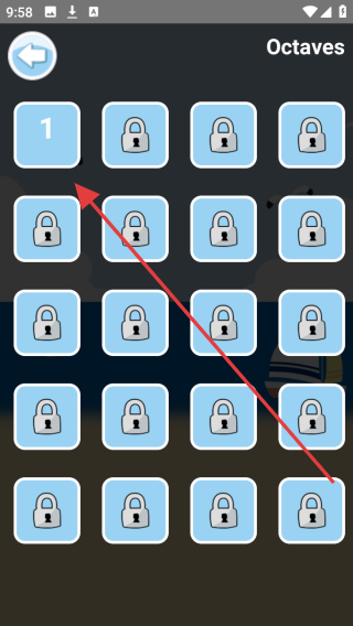 2、在【Octaves】关卡列表中,关卡1未锁定,点击进入。后续关卡需完成前置关卡解锁,按顺序逐步挑战。