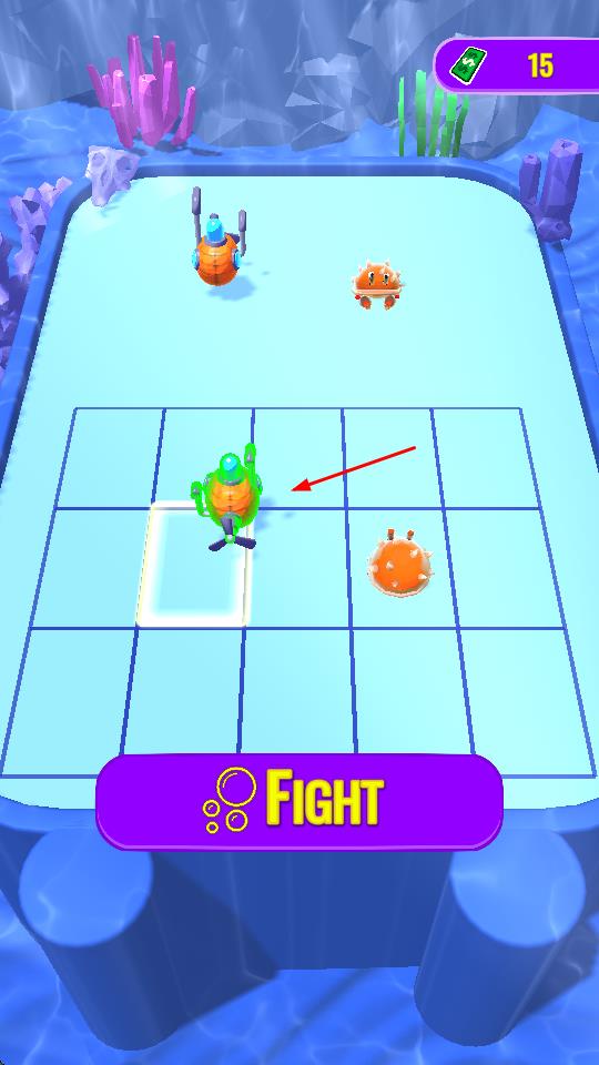 3、玩家根据敌方生物的位置和数量,在棋盘格中合理布局战斗角色。