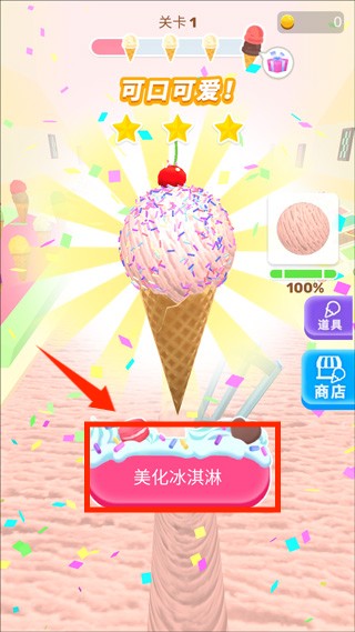 2、完成冰淇淋球的制作即可获得金币奖励,金币可用于升级商店,提升商店等级能解锁更多物品,丰富游戏内容。