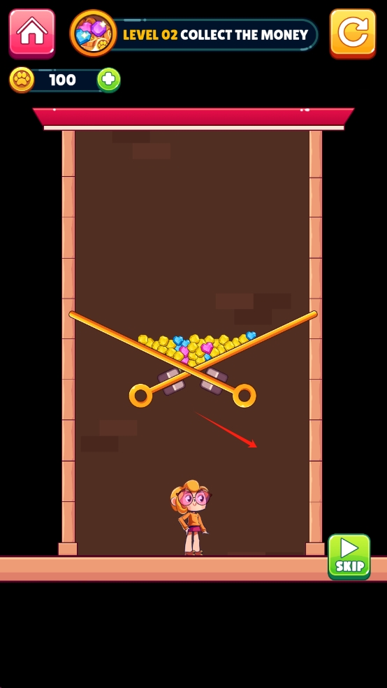 1、进入关卡后,首先观察全局布局,识别关键别针的位置与功能,通过试拉小范围调整陷阱方向,确保女孩初始移动路径安全。