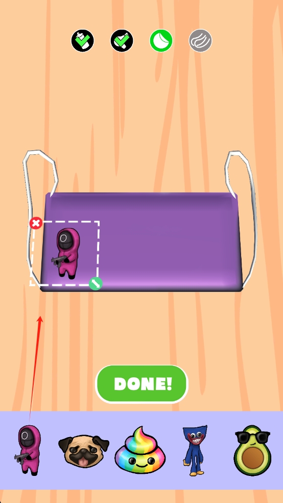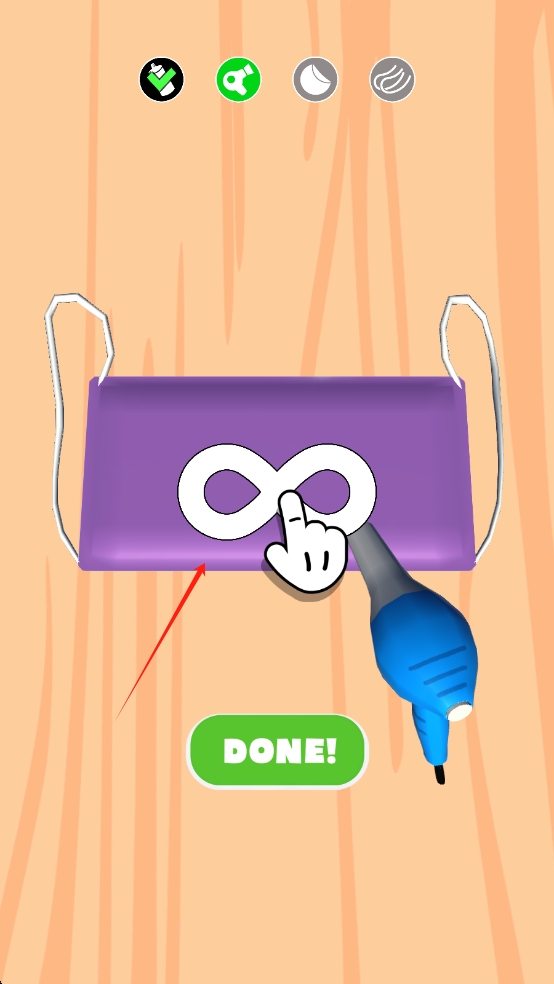1、自由创作模式:在无限制的创作空间中,玩家可随意混合颜色、叠加图案,使用喷枪、印章、文字工具等,打造独一无二的个性化口罩,完成后可保存为模板,随时调用或修改。