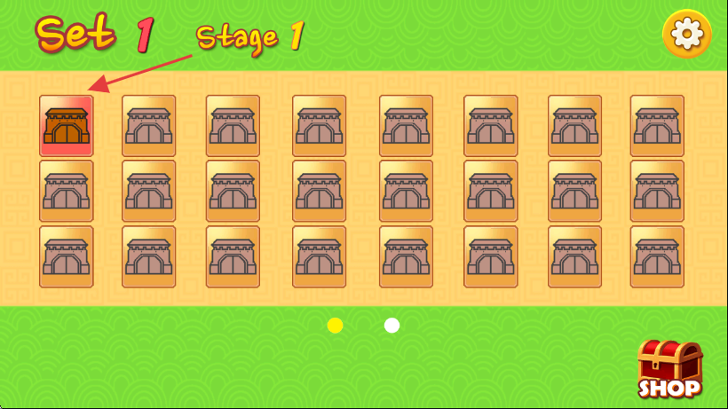 1、进入游戏关卡选择界面,点击【Set1Stage1】对应的高亮图标进入第一关。