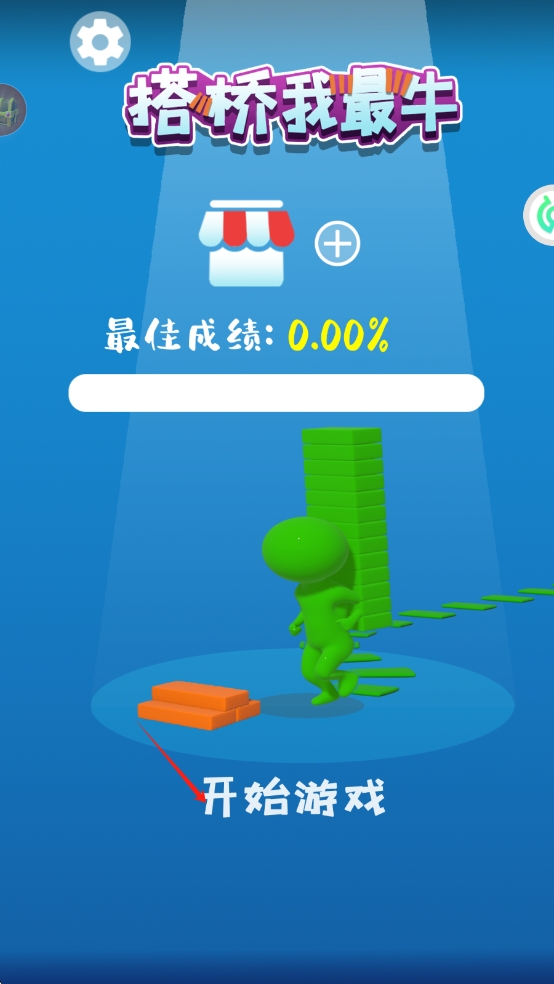 1、进入游戏,玩家首先看到关卡地形与角色起点终点,点击屏幕选取材料,在沟壑间拖动画线搭建初始桥梁。