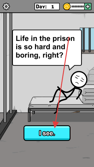 1、游戏首日,看到角色抱怨【Life in the prison is so hard and boring, right?】,点击【I see.】按钮,推进剧情。