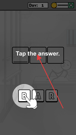 2、按提示【Tap the answer.】,通过点击字母(如【B】)组成正确单词,完成关卡任务,注意观察题目要求和字母选项。