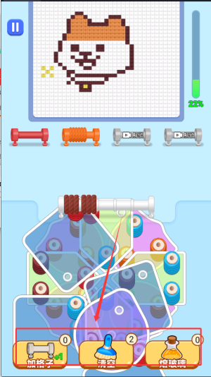 1、动态线圈重组机制,同色毛线圈接触后可触发自动吸附,三消后剩余毛线自动填补空缺,形成连贯织物纹理,支持撤销/重做操作修正错误布局。