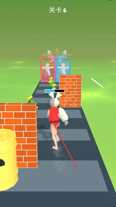 1、玩家操控戴兔耳朵的角色在道路上前进,通过操作控制角色移动方向,在不同场景中穿梭。