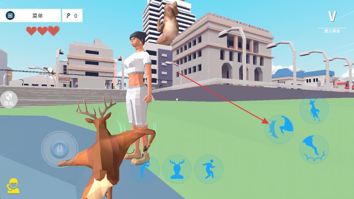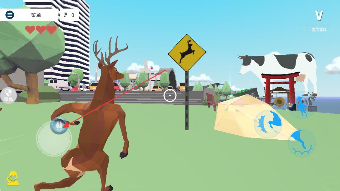 2、搞怪任务系统:设置“摧毁10辆汽车”“撞碎50块广告牌”等趣味任务,完成后解锁奇葩皮肤(如海盗鹿、机甲鹿)与新技能。