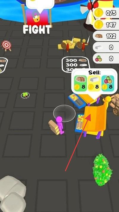 3、玩家可通过如“Sell”标识的摊位进行资源交易,将收集到的资源出售获取金币,管理资源以推进游戏进程。