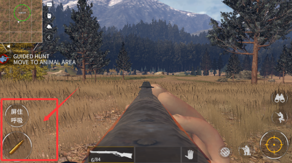 3、看到有动物出现的时候就屏住呼吸,点击左下角的子弹就可以射击出去。