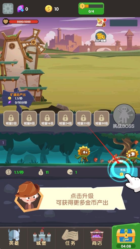 2、随着挂机推进,利用获取的资源升级角色技能、更换强力装备,解锁新的地下城区域,挑战更强力的僵尸敌人。