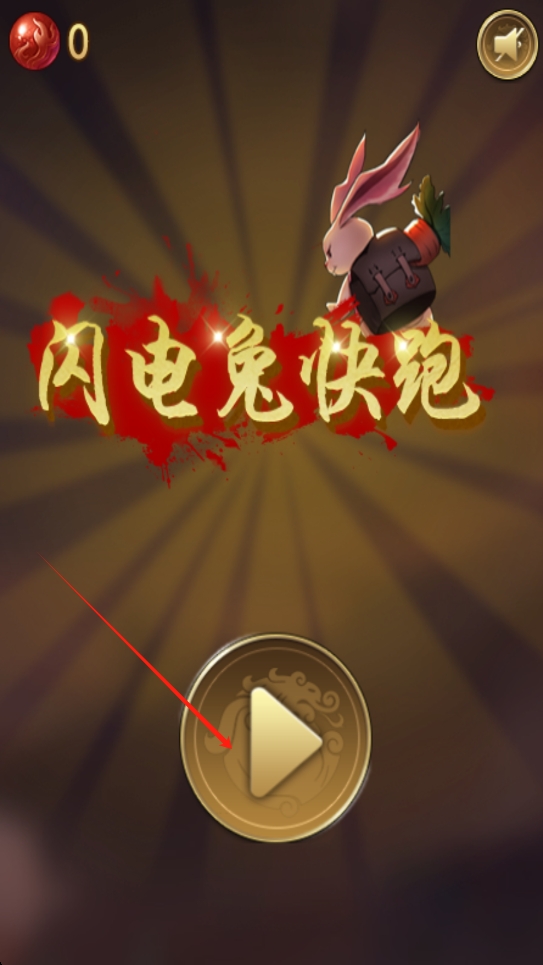 1、打开闪电兔快跑,点击金色播放按钮,进入游戏的奔跑场景。