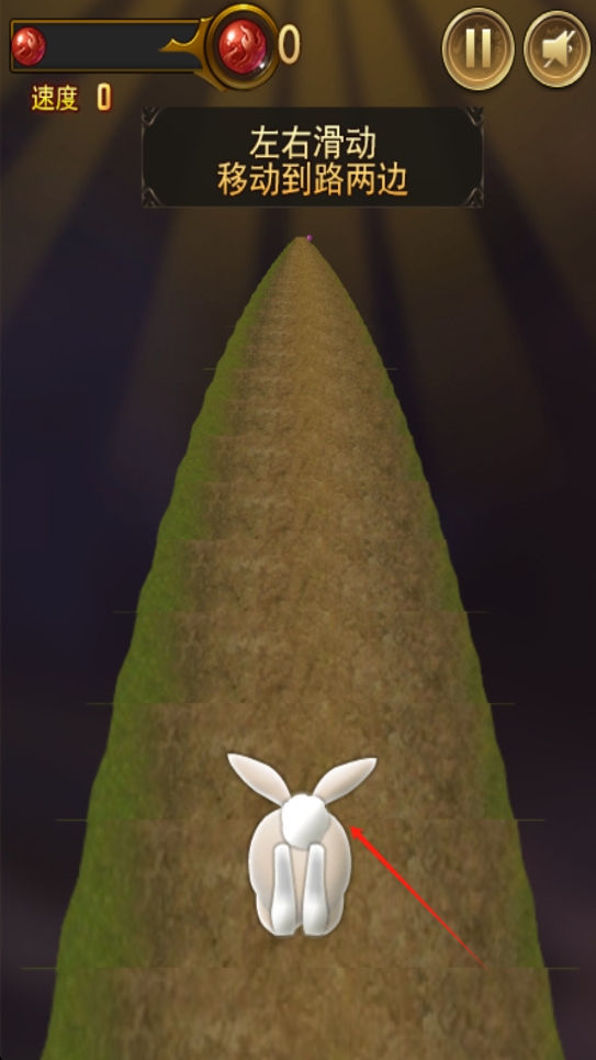 2、在游戏中,左右滑动屏幕,控制兔子移动到路两边,躲避障碍。