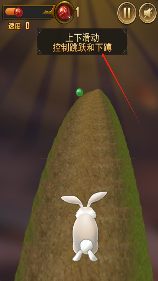 3、同时,上下滑动屏幕,让兔子跳跃或下蹲,顺利通过前方道路。