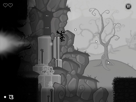 1、游戏以黑白剪影风格呈现,进入游戏后,操控角色【Crowman】【Wolfboy】在奇幻场景中冒险。