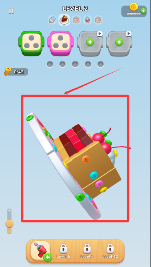 1、三维空间解谜,游戏内构建多层次场景,通过旋转视角可发现隐藏螺丝孔,例如蛋糕内部空腔需调整观察角度才能发现特殊螺丝通道。