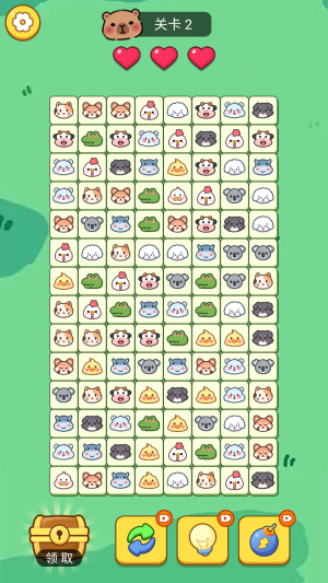 1、基础消除规则,寻找相同宠物图案,通过直线或两次转弯内连线消除。