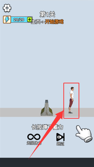1、基础动作操作,长按蓄力调整力度,松开完成起跳与空翻。