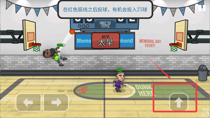 3、点击跳跃就可以投篮了,建议到最高点时再松手投掷。