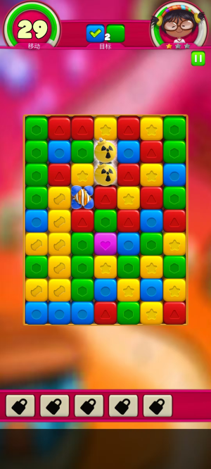 3、特殊道具系统包含彩虹星与炸弹等强化元素,合理使用可突破复杂关卡障碍。