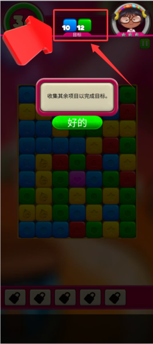 2、游戏界面操作提示收集目标任务项目即可完成任务。