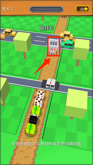 2、点击并按住小动物,找寻最佳时机即可将小动物送到马路对面。