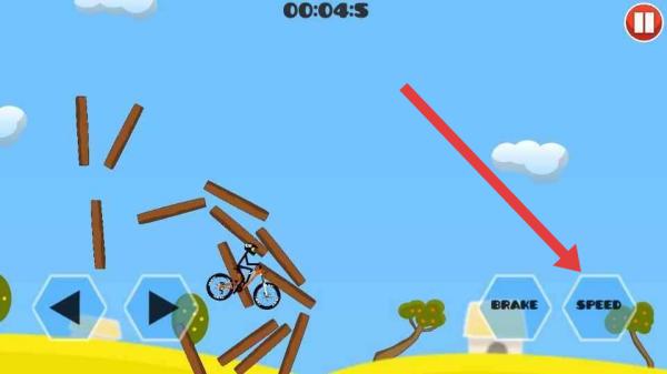 2、遇到阻挡路线的障碍物时,点击加速按钮提升马力,全力冲破障碍继续挑战赛道。