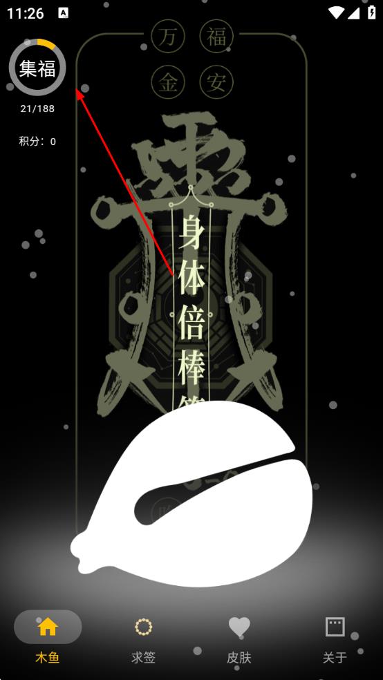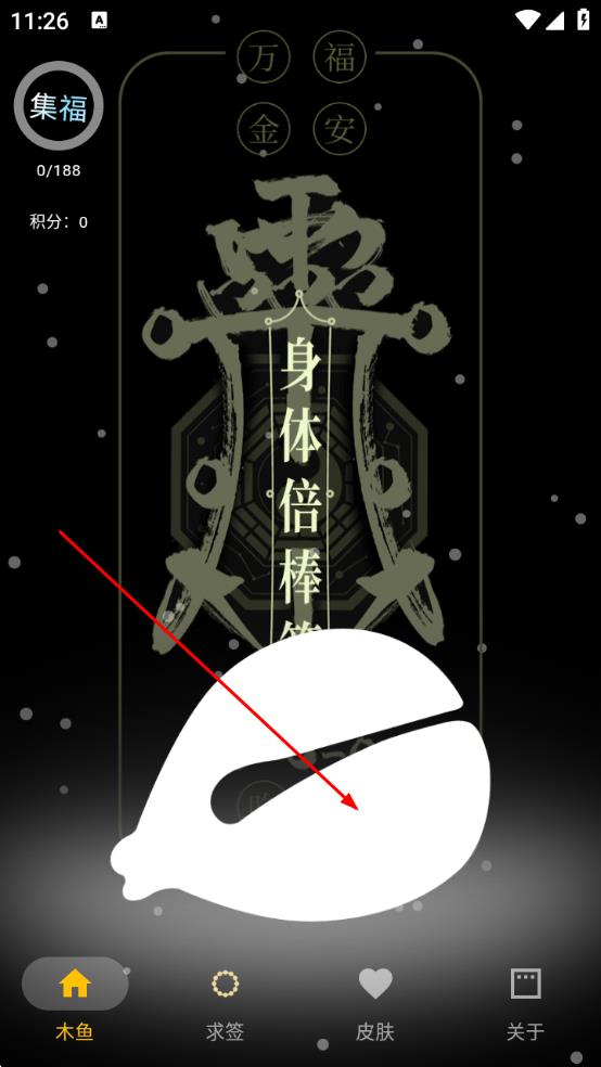1、进入敲一敲游戏,映入眼帘便是古朴木鱼,手指轻点屏幕,即可开启首次敲击,聆听清脆悦耳的木鱼声响。