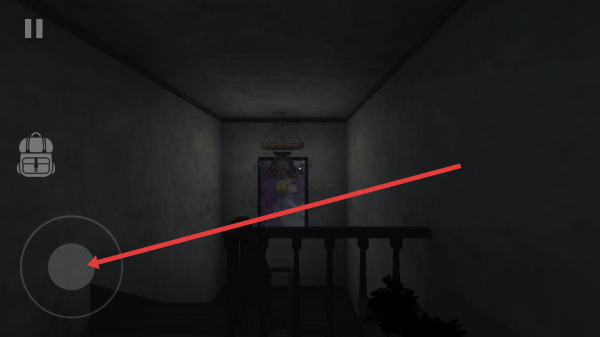 2、在游戏场景中,利用左下角的虚拟摇杆(灰色圆形)操控角色移动,探索昏暗房间,留意周围环境与线索。