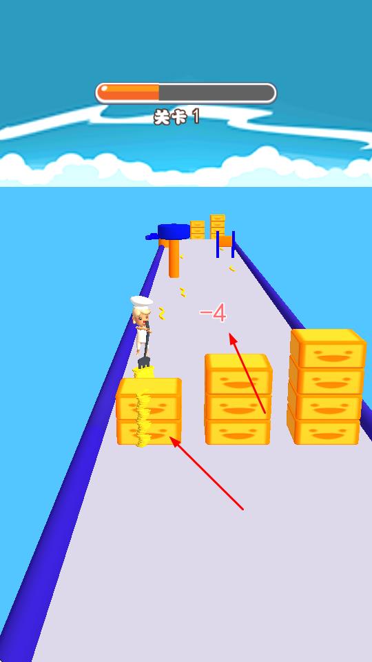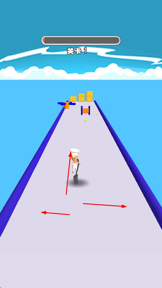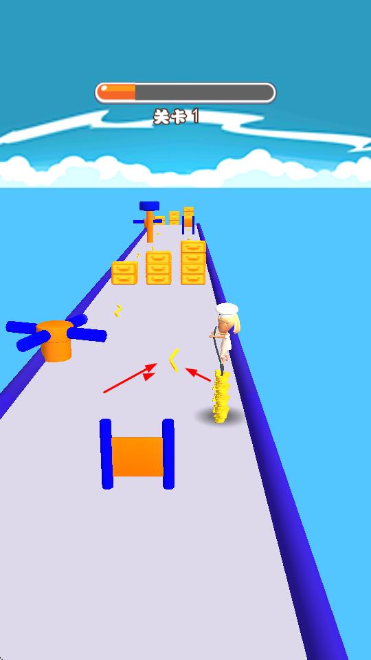2、玩家在前进途中收集道路上的面条,增加面条高度,同时要注意避开减少面条高度的区域。
