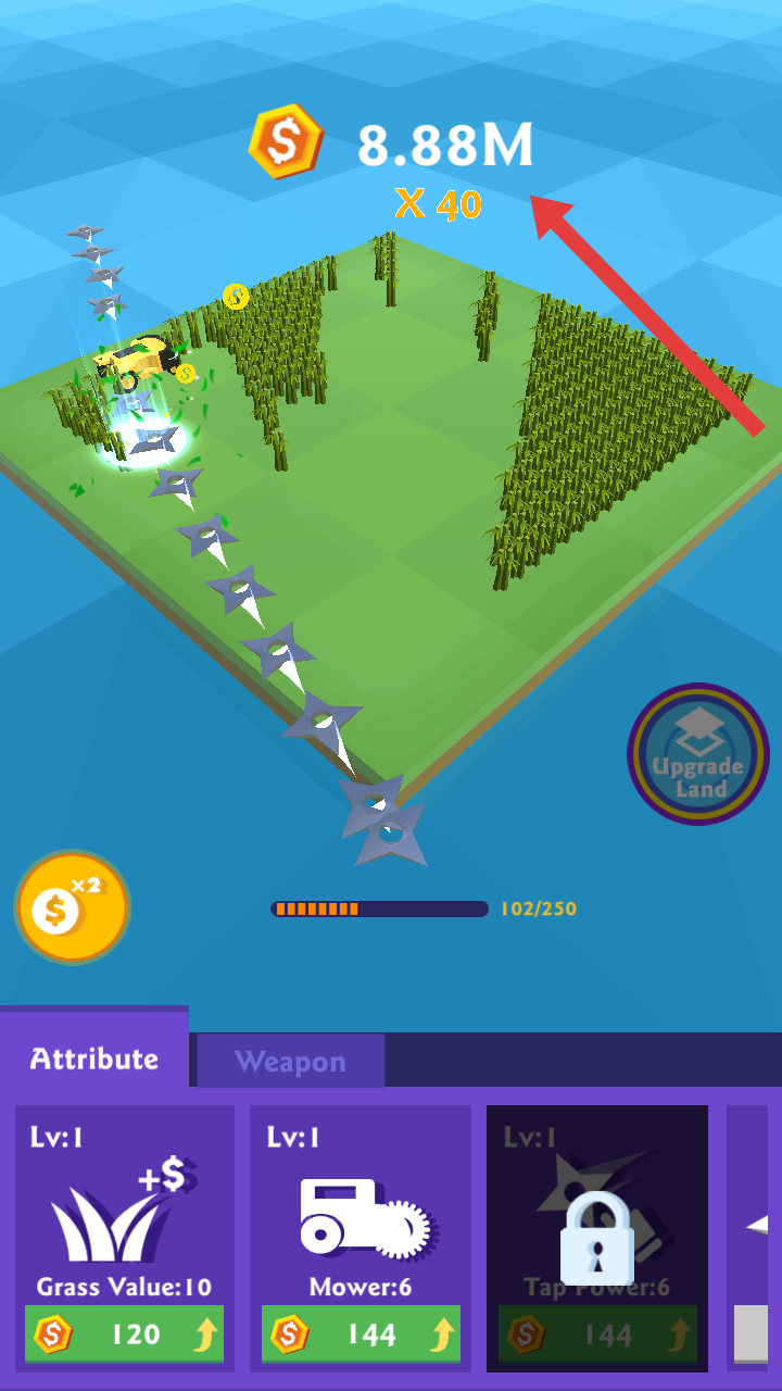 1、丰富道具类型:提供丰富的割草道具,如忍者飞镖、美国队长的盾牌等各种有趣道具,每种道具割草效果独特,自由选择助力完成割草任务。