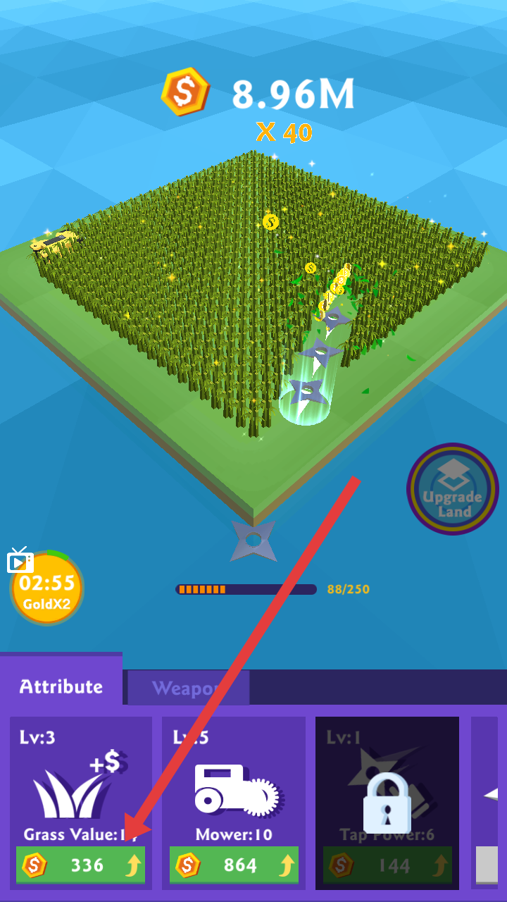 3、点击【GrassValue】旁的升级按钮,提升草的价值,以此获得更多金币,增强游戏体验。