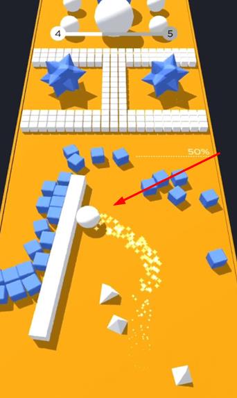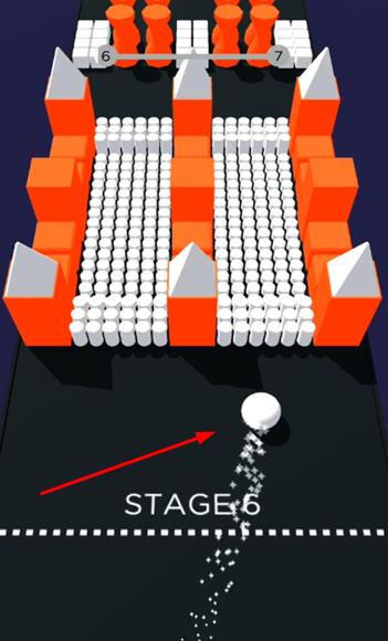 3、收集与小球同色的能量块,获取加速效果,以最快速度抵达终点,根据用时和收集情况获取星级评价,解锁新关卡。