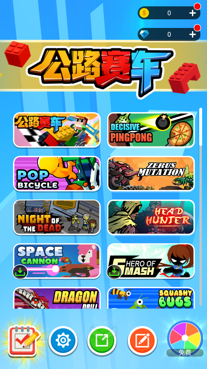 1、在游戏主界面,选择【公路赛车】游戏模块,点击进入游戏,可留意界面上方的金币和钻石数量。