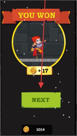 3、成功通关后,出现“YOUWON”提示并获得金币奖励,点击“NEXT”按钮,进入下一关继续挑战。