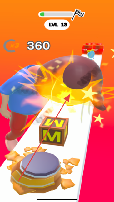 2、简单操作轻松上手:操作方式简洁直观,向下滑动屏幕即可让角色头部砸击物品,无需复杂按键或技巧,新手玩家也能快速掌握,在轻松操作中专注于躲避障碍。
