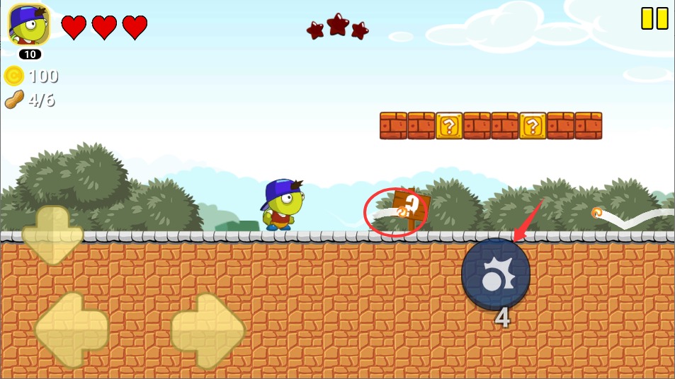 1、游戏开始后使用左侧虚拟摇杆控制角色移动方向,灵活调整位置避开地面障碍物,熟悉基础操作手感。