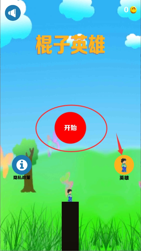 1、进入游戏后点击开始按钮,小英雄会自动出现在起点平台,准备开启跨越障碍的冒险之旅。