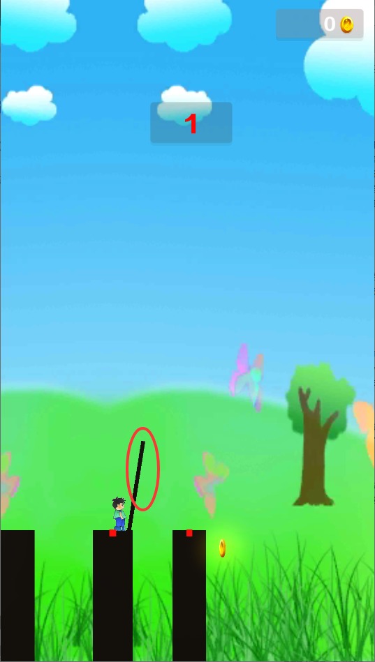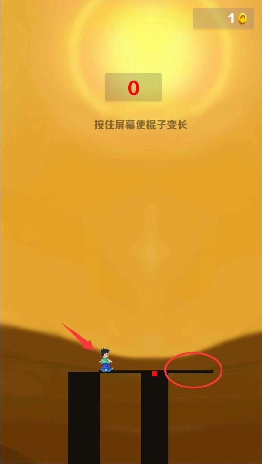 2、遇到平台缺口时,长按屏幕控制棍子延伸长度,松开手指棍子立即停止生长,需要精准把控延伸时机。