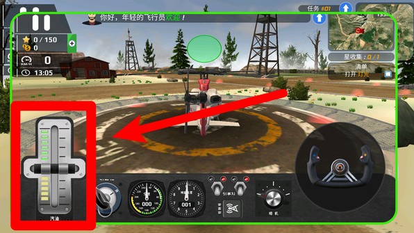 3.操纵左边推杆调整直升机上升与下降,高度变化一目了然。