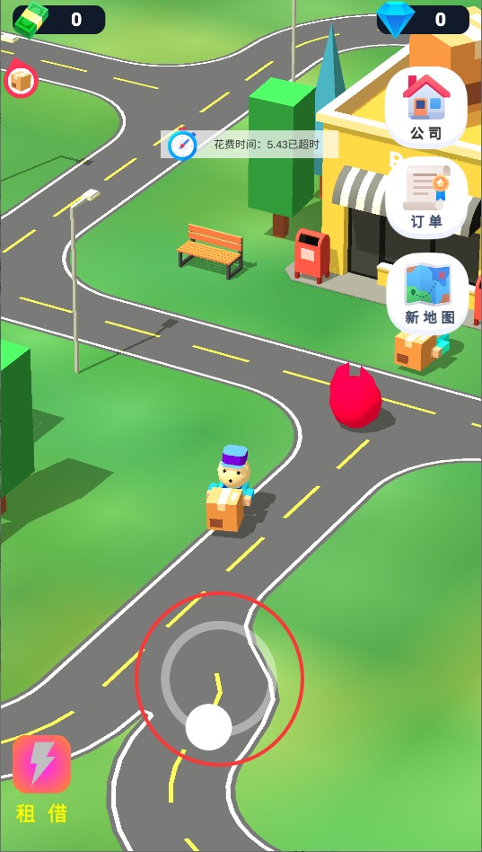 1、进入游戏后,通过手指滑动屏幕控制送货员移动方向,灵活穿梭在城市街道中,注意避开行人和车辆。