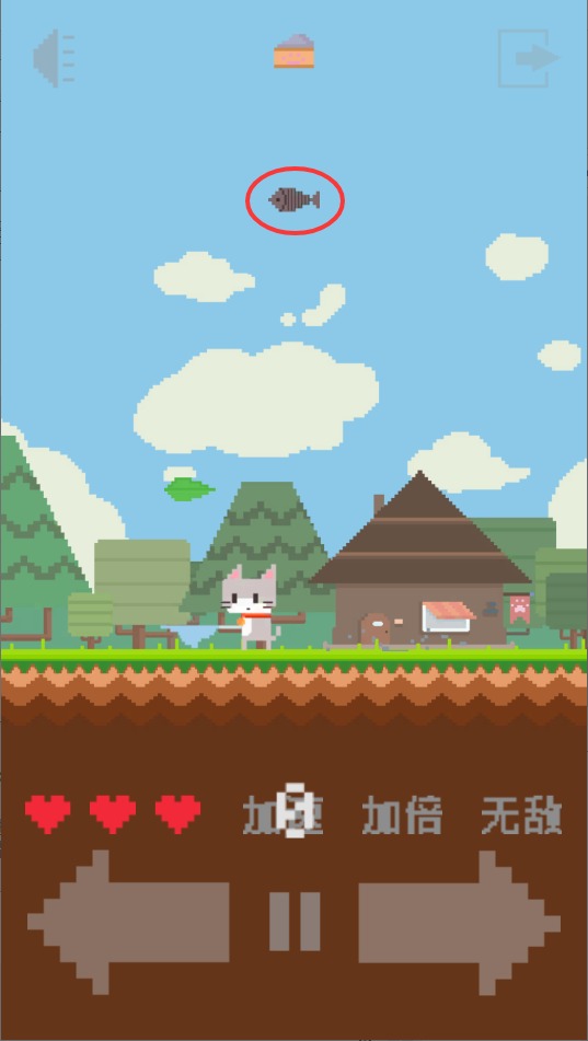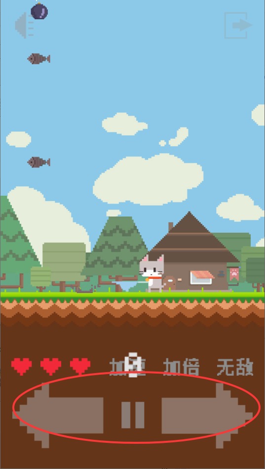 1、游戏启动后,点击屏幕底部的方向按键控制猫咪移动,通过左右滑动来调整行进路线和速度。