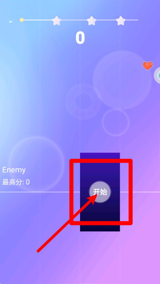 1.点击“开始”按钮正式进入游戏,跟随着音乐节奏,控制角色在音符上跳跃,保持节奏感。