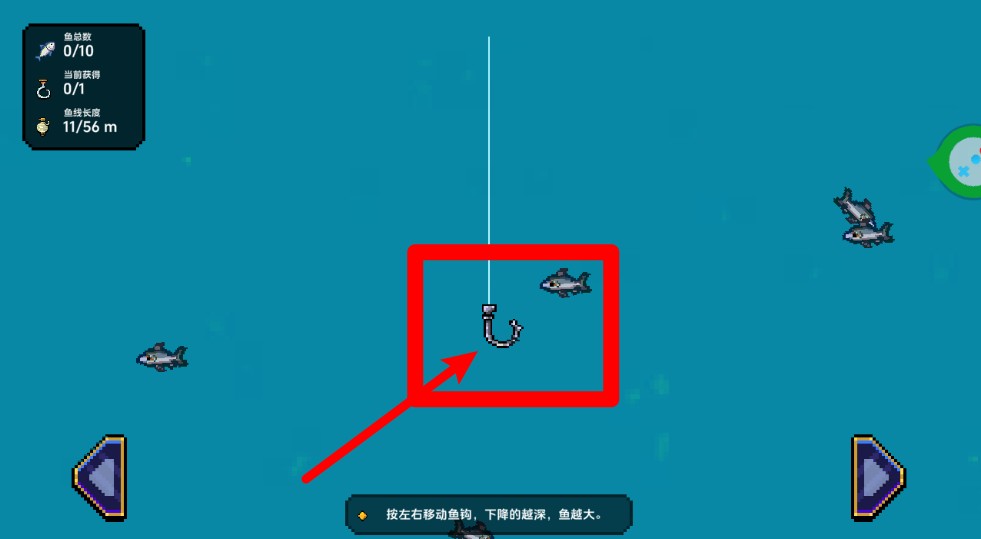 1.点击屏幕甩出钓竿等待鱼儿上钩,轻松完成钓鱼。