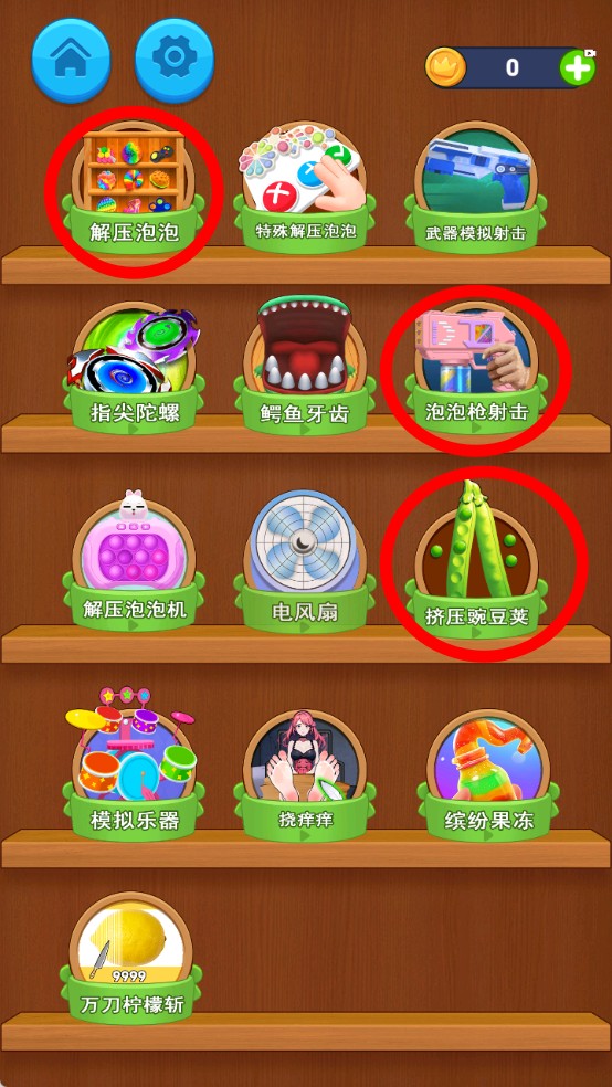 1.进入游戏后,选择喜欢的解压工具,例如泡泡、泡泡枪、捏豆荚等,开始解压体验。