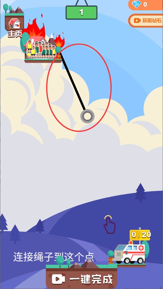 2、用手指画出救援绳索,连接起点和终点。绳索长度有限,需要精打细算。角度和松紧度影响下滑速度。