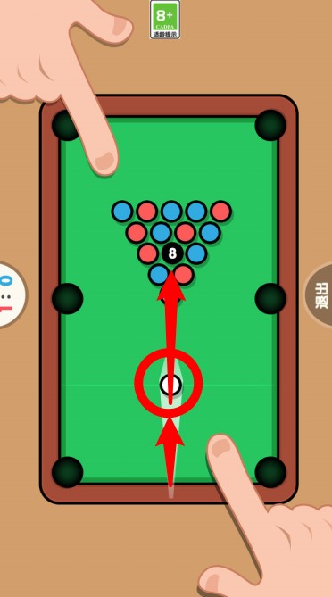 3.用手指调整白球瞄准方向,拖动瞄准线对准目标球发力。
